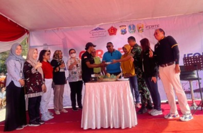 Sebanyak 310 unit safety Jacket bantuan dari iForte Jawa Timur dibagikan kepada Paguyuban Perahu Wisata Taman Kenjeran di Taman Suroboyo.